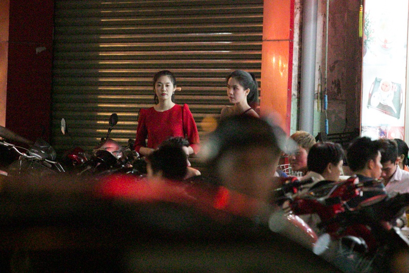 Hai người đẹp tìm kiếm chỗ ngồi quen thuộc.