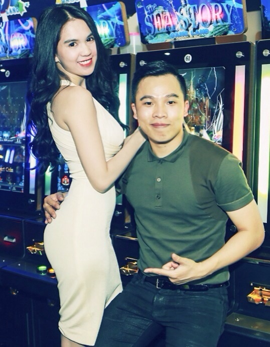 | Ông bầu Vũ Khắc Tiệp tháp tùng các người đẹp dự sự kiện. |