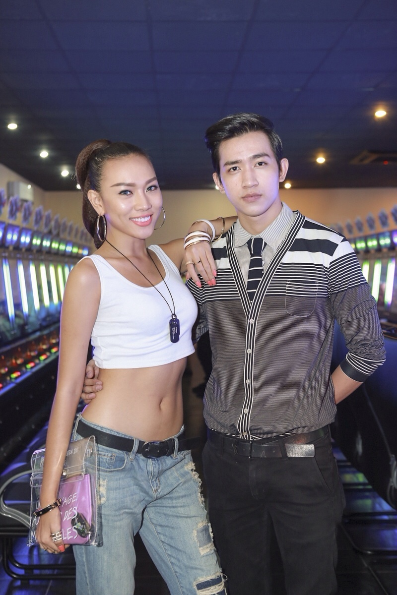 | Người mẫu cá tính Diệu Huyền đồng hành cùng Võ Cảnh. Người đẹp diện bộ trang phục năng động mạnh mẽ, áo crop-top kết hợp cùng quần jeans rách cá tính, bụi phủi. |
