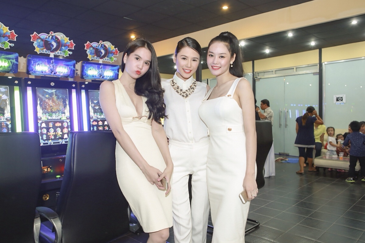 | Dàn người đẹp công ty Venus cùng diện trang phục gam trắng tinh tế. |