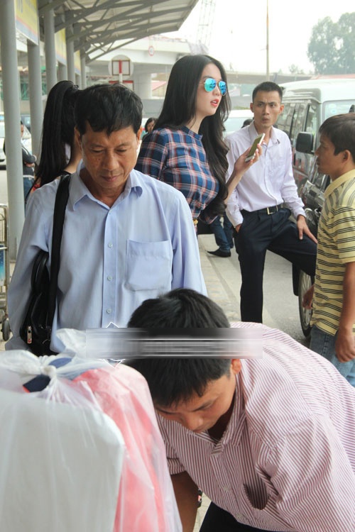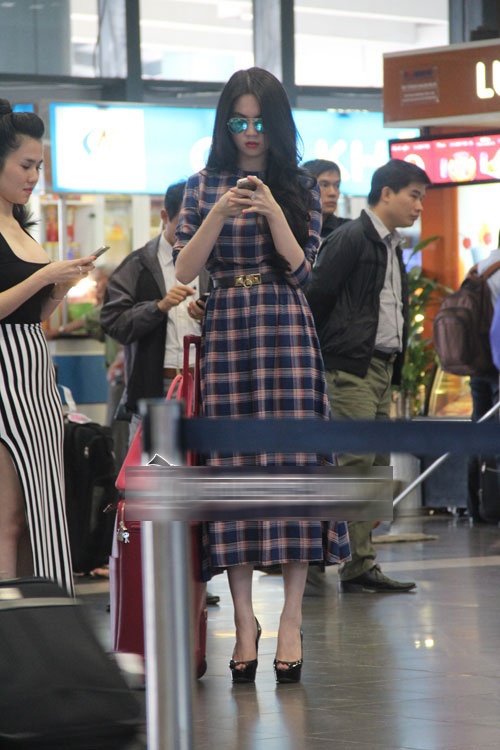 | Ngay khi xuất hiện tại sân bay Nội Bài, với style sân bay nổi bật cùng gương mặt xinh đẹp, ngây thơ, Ngọc Trinh thu hút sự chú ý của hầu hết quan khách có mặt tại sân bay. |
