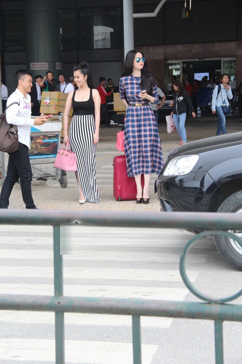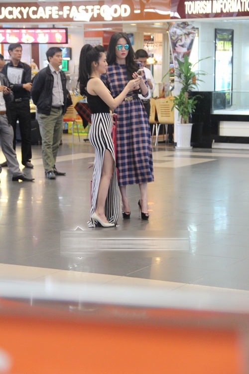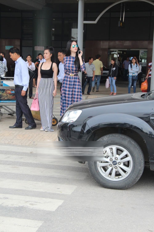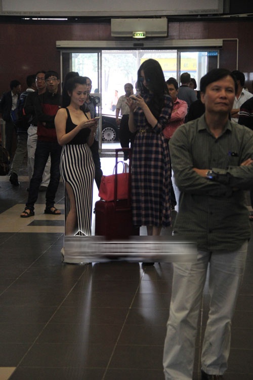 | Ngọc Trinh và chị gái thu hút sự chú ý của rất đông quan khách có mặt ở sân bay. |