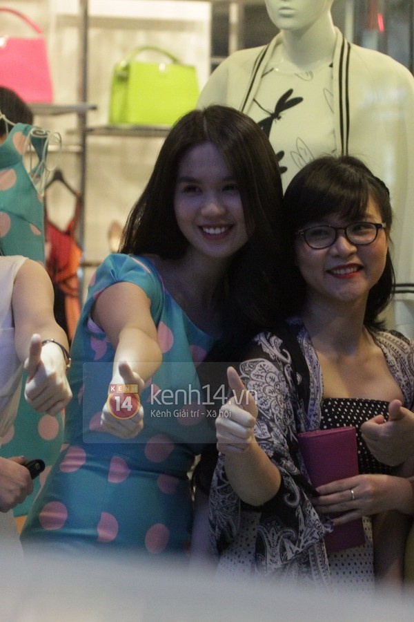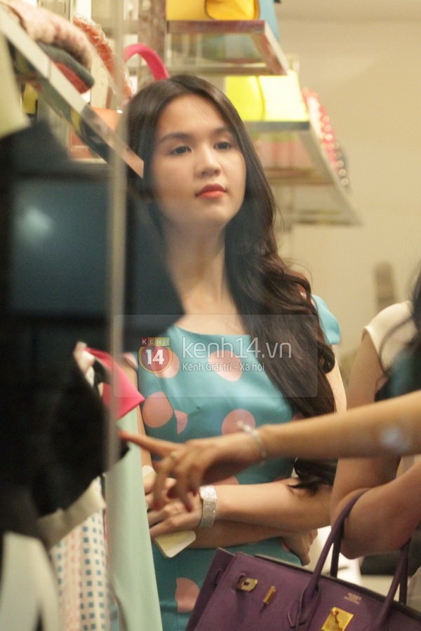| Ngọc Trinh xuất hiện tại một cửa hàng thời trang ngay sau khi đến Hà Nội tối qua. |