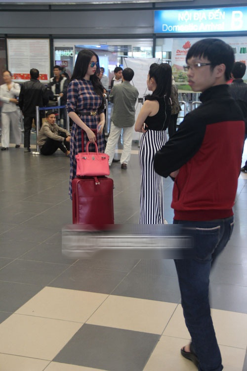 | Nhan sắc nổi bật của Ngọc Trinh tại sân bay. |