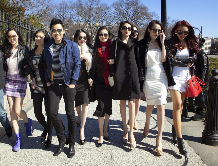 Đoàn người đẹp đến từ Việt Nam nổi bật trên phố, thu hút sự chú ý.