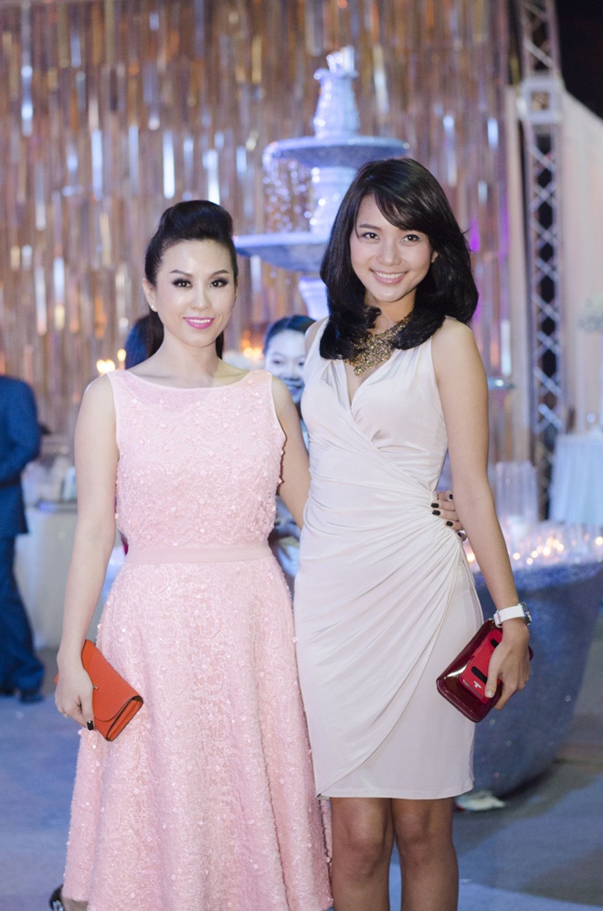 Người đẹp Phan Như Thảo - bạn thân của Ngọc Thạch - ăn vận khá đơn giản khi sánh bước cùng Hoa hậu phu nhân Thu Hoài tới chúc mừng cô dâu chú rể. Họ chính là những người bạn không quản ngại vất vả bay từ Sài Gòn ra Hà Nội để chia vui cùng vợ chồng người mẫu gốc Hậu Giang.