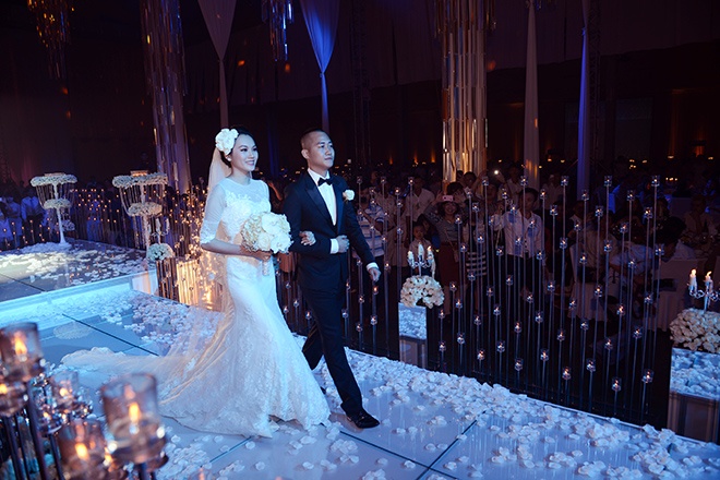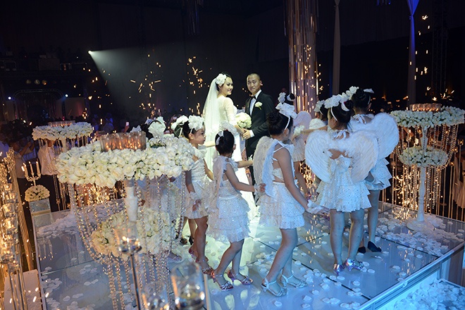 ... và được chú rể Đỗ Bình Dương cùng dàn thiên thần nhí chào đón trong không gian ngập tràn hoa cùng nến.