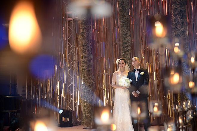 | Hàng ngàn cây nến khiến không gian đám cưới càng lung linh, ngọt ngào hơn. |