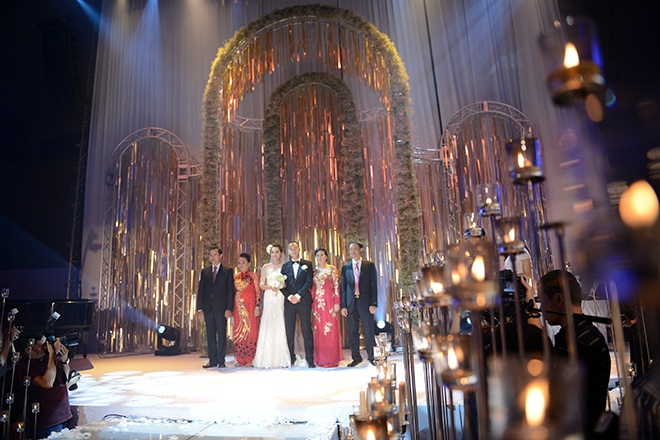 Bố mẹ hai bên cũng xuất hiện trên sân khấu cùng cô dâu Ngọc Thạch và chú rể Bình Dương.
