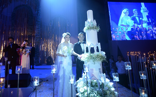 Hôn lễ của chân dài được tổ chức khá đơn giản dù phần trang trí, chuẩn bị rất cầu kỳ. Nguyên nhân có lẽ bởi họ đã tổ chức đám cưới ở Hậu Giang cách đây ít tuần. Lễ đính hôn tổ chức trước đó cũng khá hoành tráng và khiến nhiều người ấn tượng.