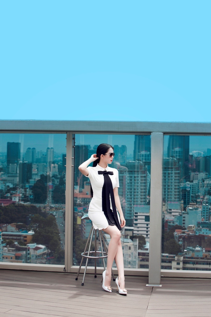 | Ngọc Trinh chọn một bối cảnh đẹp để có thể thấy được Sài Gòn từ trên cao. |