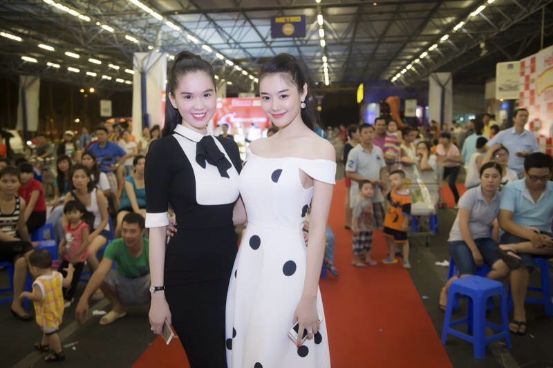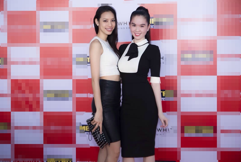 | Người mẫu trẻ Trương Mỹ Nhân đọ dáng cùng Ngọc Trinh. |