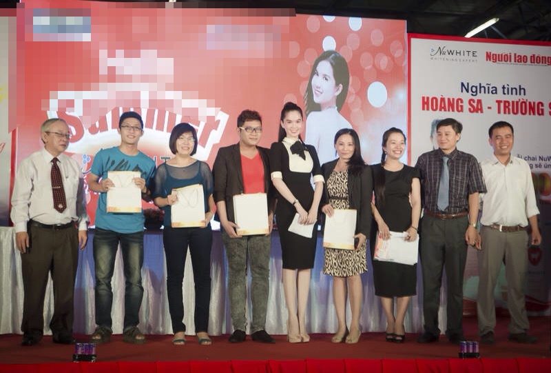 | Kết thúc chương trình, Ngọc Trinh chụp hình cùng ban tổ chức và các khách mời. |