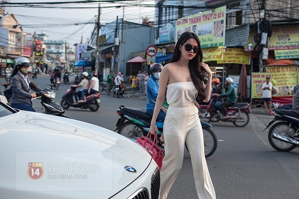 | Mới đây, Ngọc Trinh đã tự lái xe quãng đường hơn 30 km từ TP.HCM về thành phố Biên Hòa để dự khai trương cửa hàng quần áo mới của mình. |
