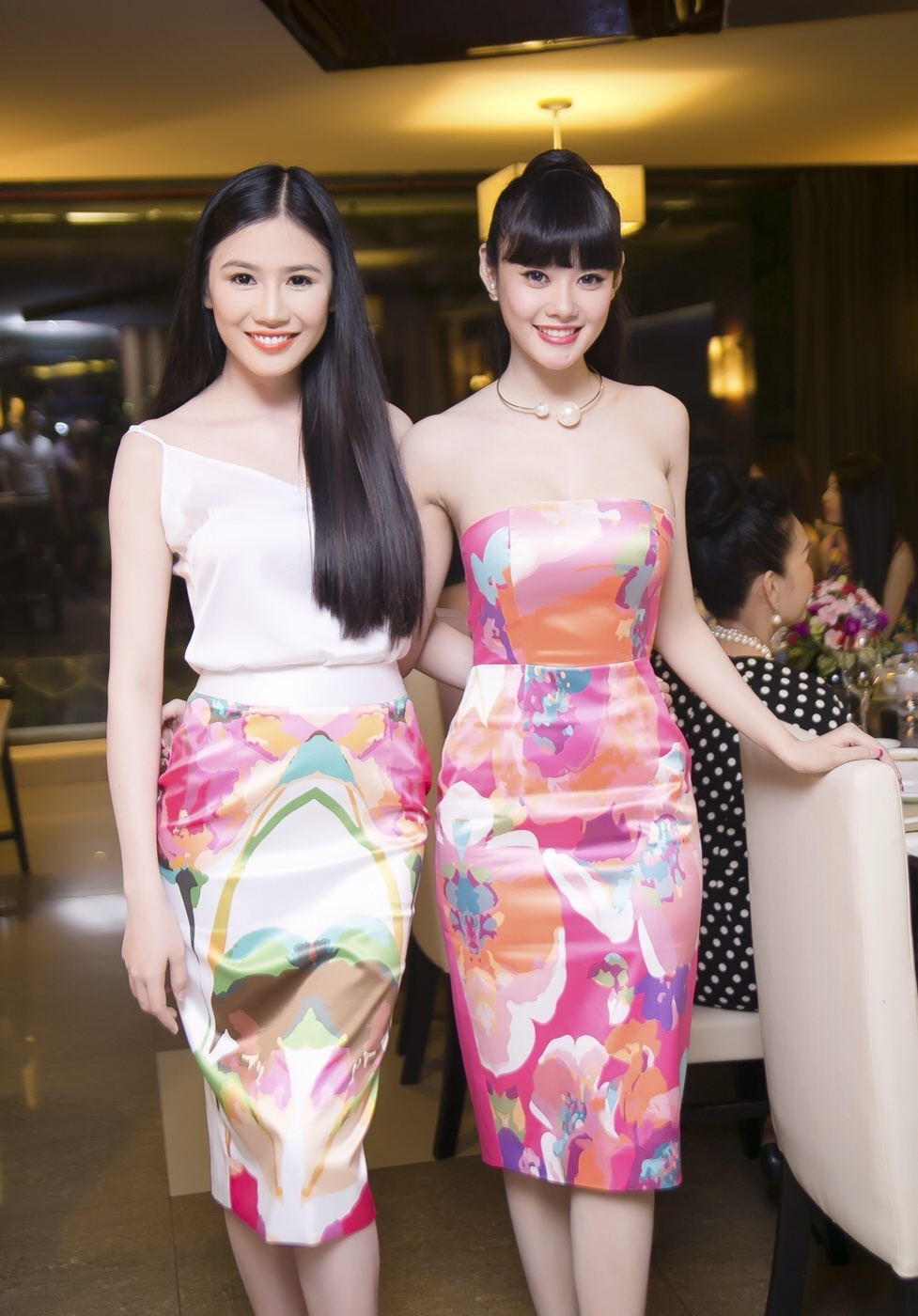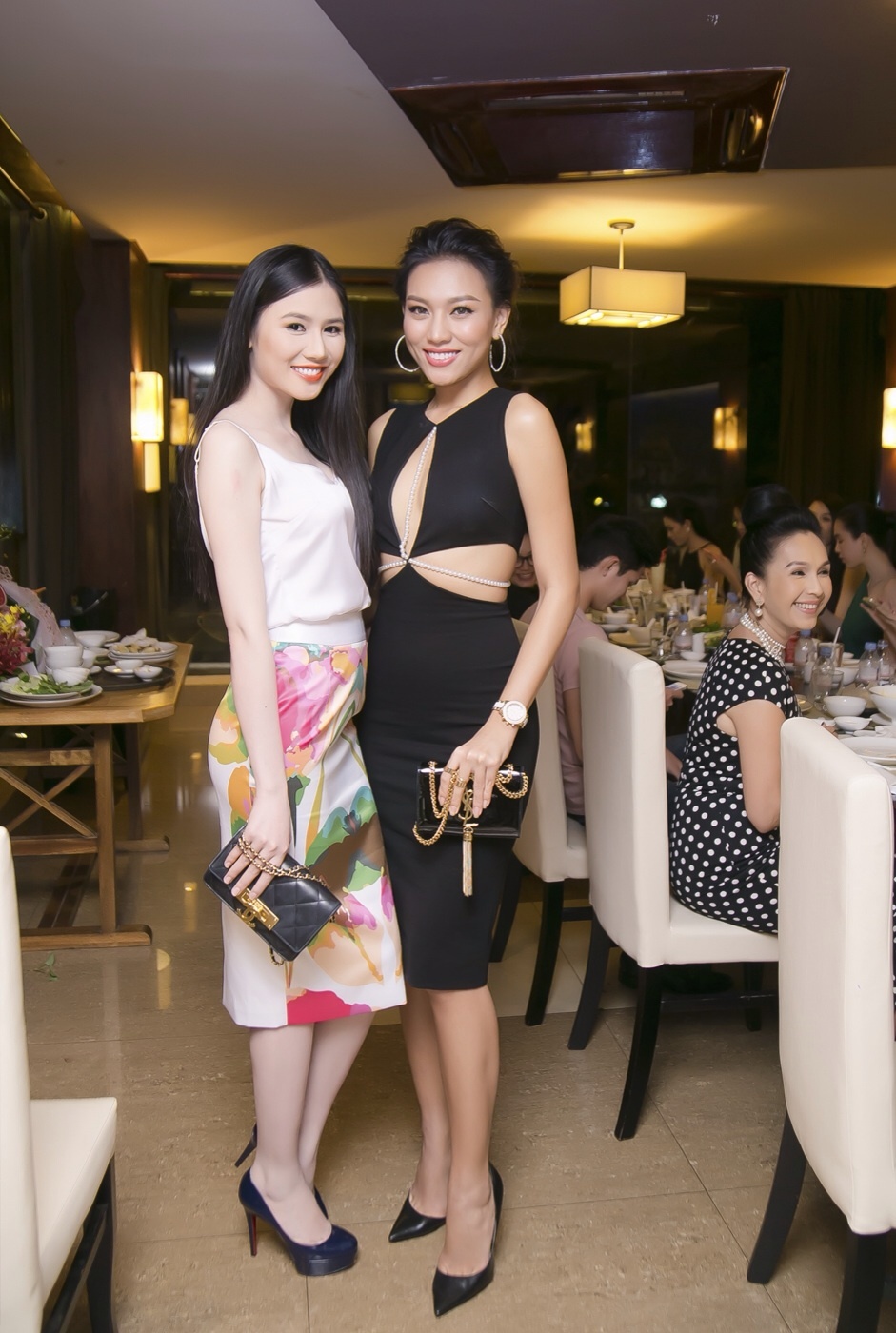 | Tối 31/8, Ngọc Trinh cùng Linh Chi tham dự buổi tiệc mừng của đàn em Tường Vy. Hai mỹ nhân làng giải trí thu hút ánh nhìn với bộ cánh hợp thời trang. Trong khi Linh Chi chọn bộ váy quây trẻ trung, họa tiết sắc màu, Ngọc Trinh đằm thắm với mẫu đầm lệch vai tông màu trầm nền nã, sang trọng. Ngoài Linh Chi, tất cả các người mẫu trong buổi tiệc đều diện trang phục của Ngọc Trinh. |