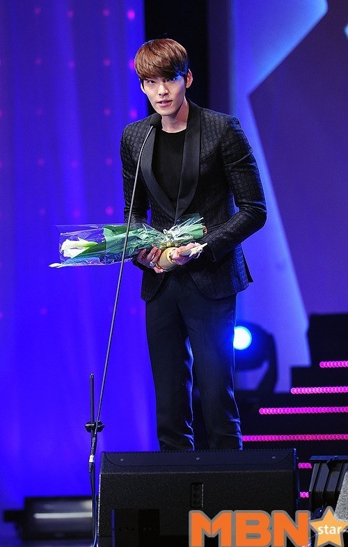 | Trong tấm ảnh chụp vội này, Kim Woo Bin nhoẻn miệng cười nhiều hơn. |