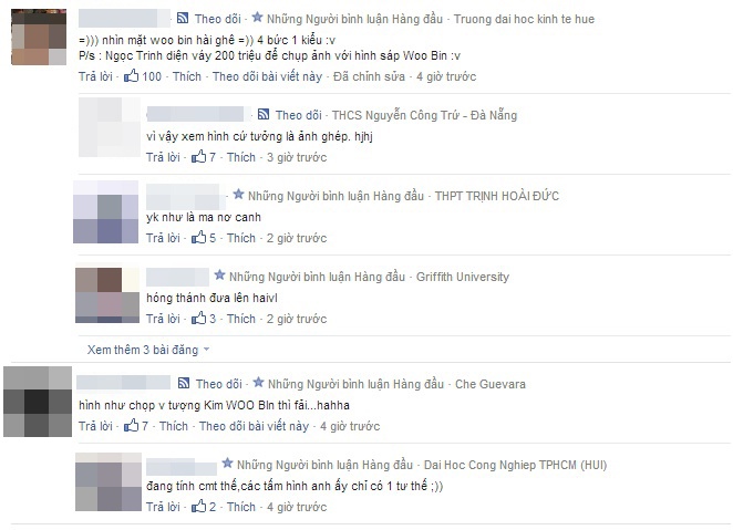 Tuy nhiên, trong những bức ảnh được báo giới Việt đăng tải, cách tạo dáng của Kim Woo Bin khi đứng cạnh Ngọc Trinh gây thắc mắc cho cư dân mạng. Trong ảnh chụp với các người mẫu Việt khác cũng cho thấy Kim Woo Bin chỉ giữ một kiểu đứng chụm 2 tay, nghiêng đầu. Nhiều cư dân mạng đặt ra nghi vấn liệu Ngọc Trinh có ghép ảnh với Kim Woo Bin hoặc rất có thể cô chụp với… tượng của mỹ nam xứ Hàn.