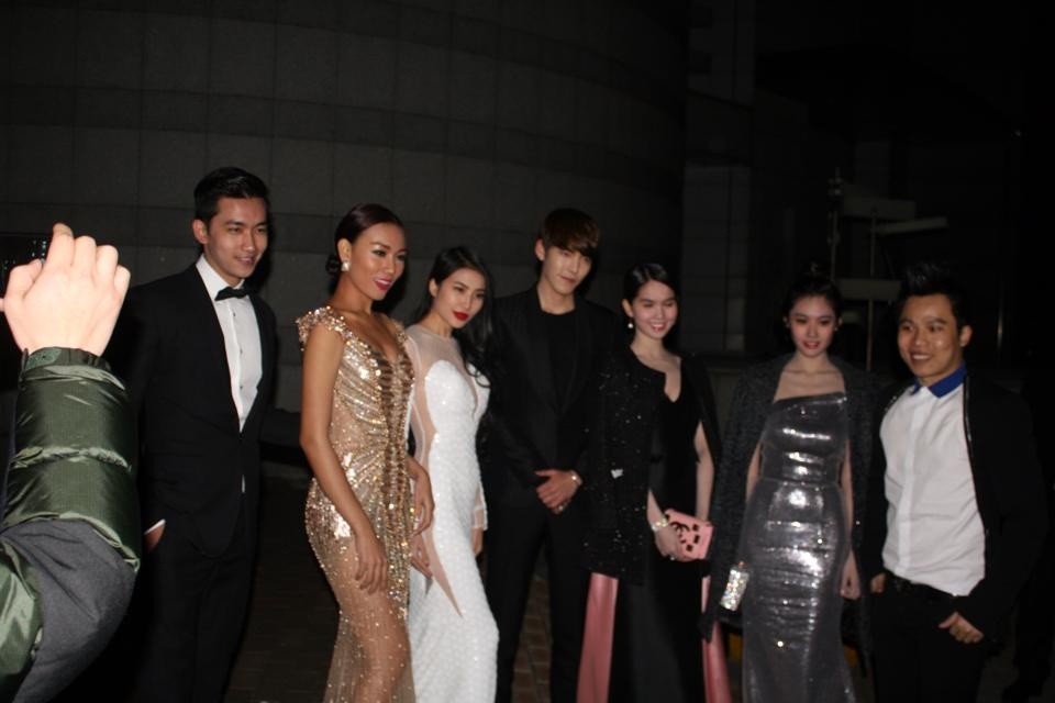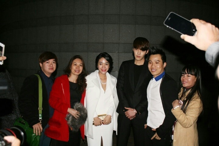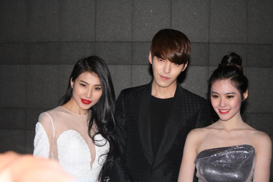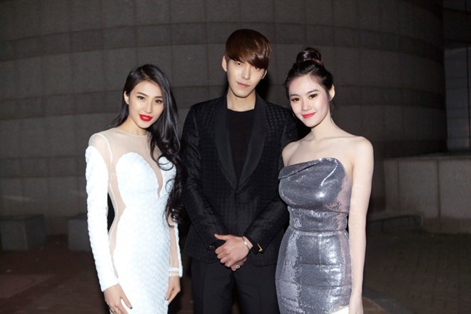 Xuất hiện rạng rỡ trong sự kiện, đại diện Việt Nam không quên ghi lại những kỷ niệm đáng nhớ với đồng nghiệp Hàn Quốc trong đó có Kim Woo Bin. Kim Woo Bin xuất thân từ người mẫu khá nổi tiếng với chiều cao 1m86 và nổi tiếng kể từ sau vai diễn trong phim truyền hình The Heirs. Tài tử trẻ xứ kim chi có dịp chụp ảnh cùng Ngọc Trinh và các chân dài Việt Linh Chi, Thái Hà, Minh Thư…