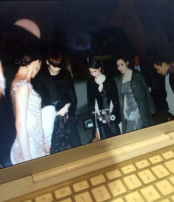 Người đẹp Việt cũng chia sẻ thêm những bức ảnh ghi lại khoảnh khắc đoàn Việt Nam gặp gỡ sao The Heirs, đặc biệt có tấm hình Kim Woo Bin với nụ cười nhếch mép đặc trưng của anh. Những hình ảnh hậu trường mà người đẹp gửi về cũng cho thấy nhiều "kiểu đứng" khác của mỹ nam xứ Hàn.
