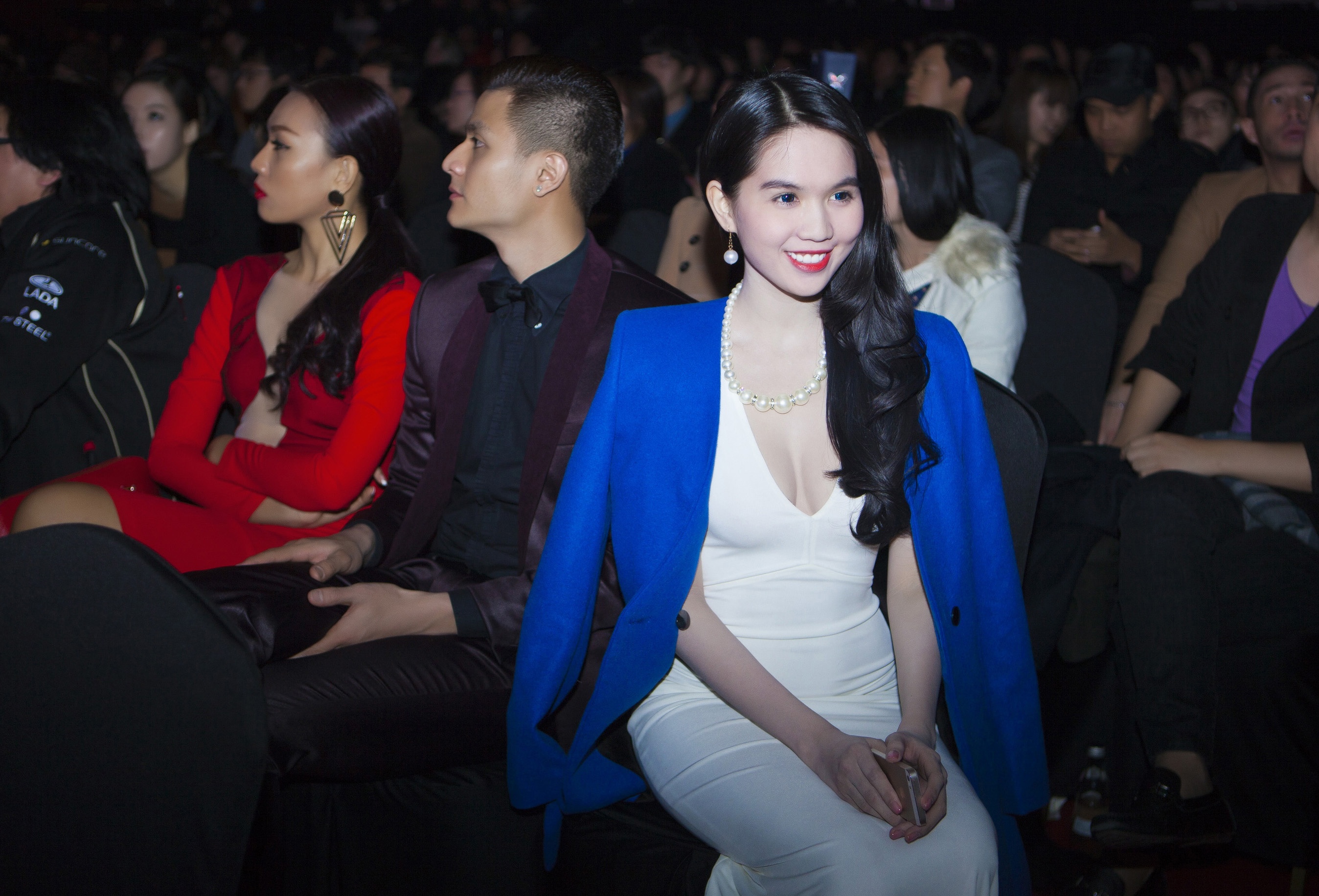 Ở hàng ghế khách mời, Ngọc Trinh nổi bật với váy ôm xẻ ngực sâu.