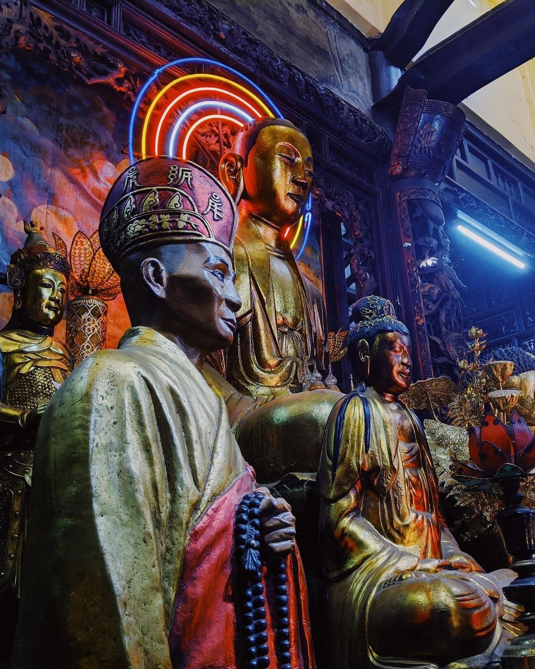 | Ghé đây, bạn có thể chiêm ngưỡng 60 bức tượng Phật làm từ gỗ, đồng hoặc đất nung, tất cả đều được sơn son thếp vàng óng ánh. Đặc biệt, bộ tượng 18 vị La Hán đúc từ đầu thế kỷ XX tuy có quy mô nhỏ hơn nhưng được đánh giá là không thua kém về mặt nghệ thuật so với tượng các vị La Hán chùa Tây Phương (Hà Nội). Ảnh: Saverio_gravina, theakhiltaneja. |