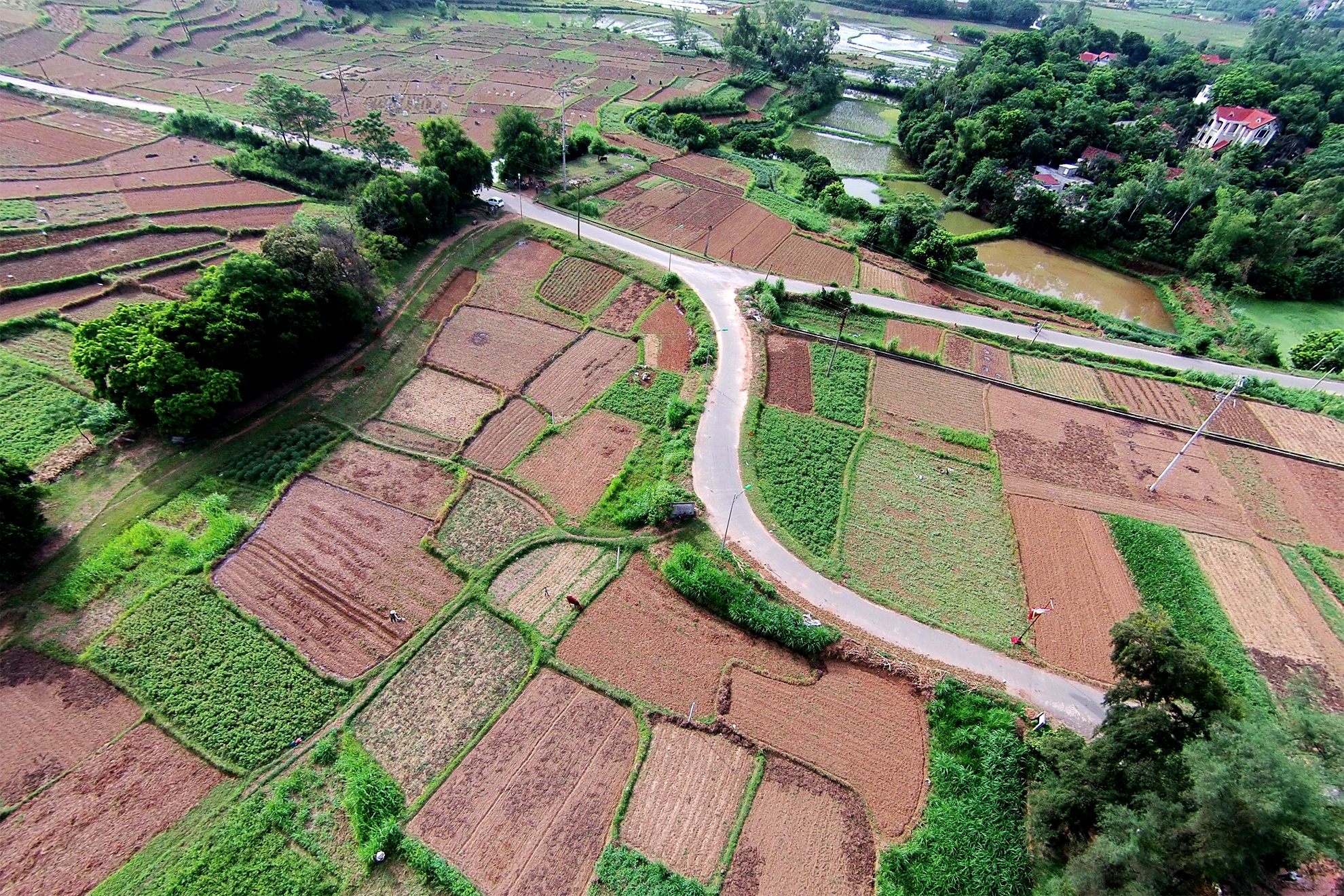 | Các con đường vào làng nhỏ hẹp, uống lượn như những dòng suối chảy. |
