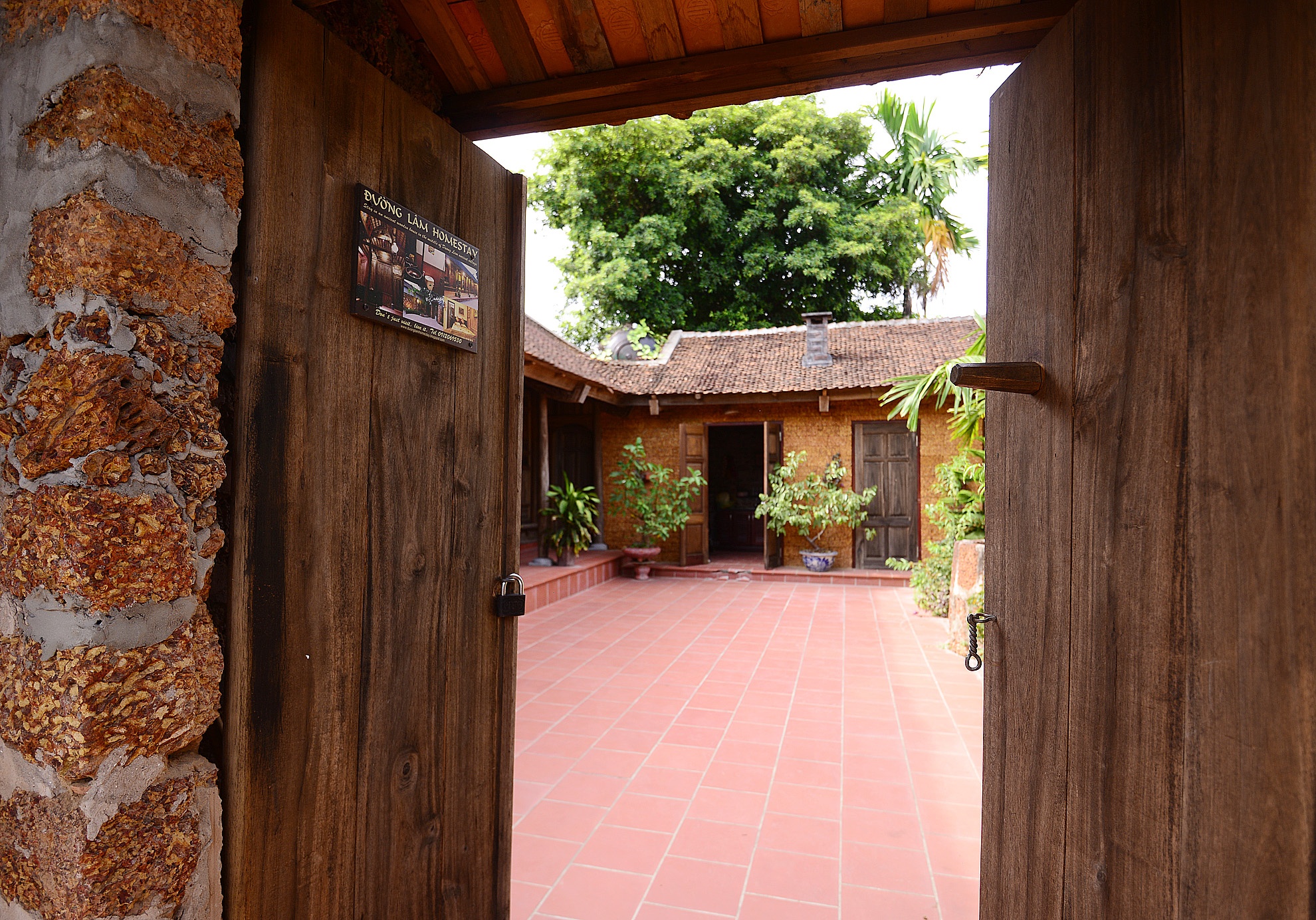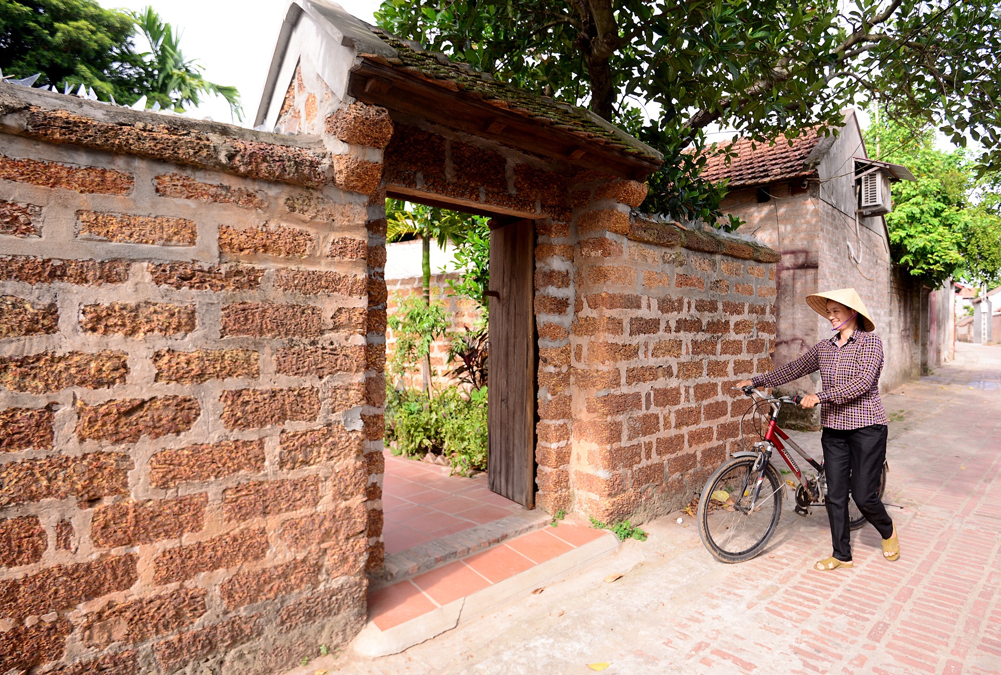 | Các chi tiết làm nên linh hồn của làng là các bức tường đá ong, cổng đá ong, lối đi lát gạch nghiêng, bậu cửa cao và gian thờ tổ tiên. |