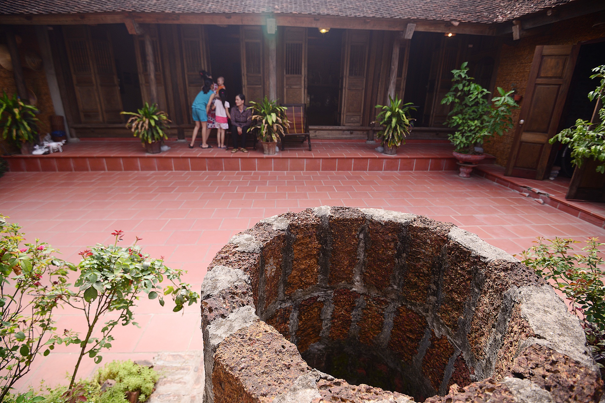 | Trong làng còn nhiều giếng nước cổ các kích cỡ, từ nhỏ đến to, trong sân và ngoài đình. |