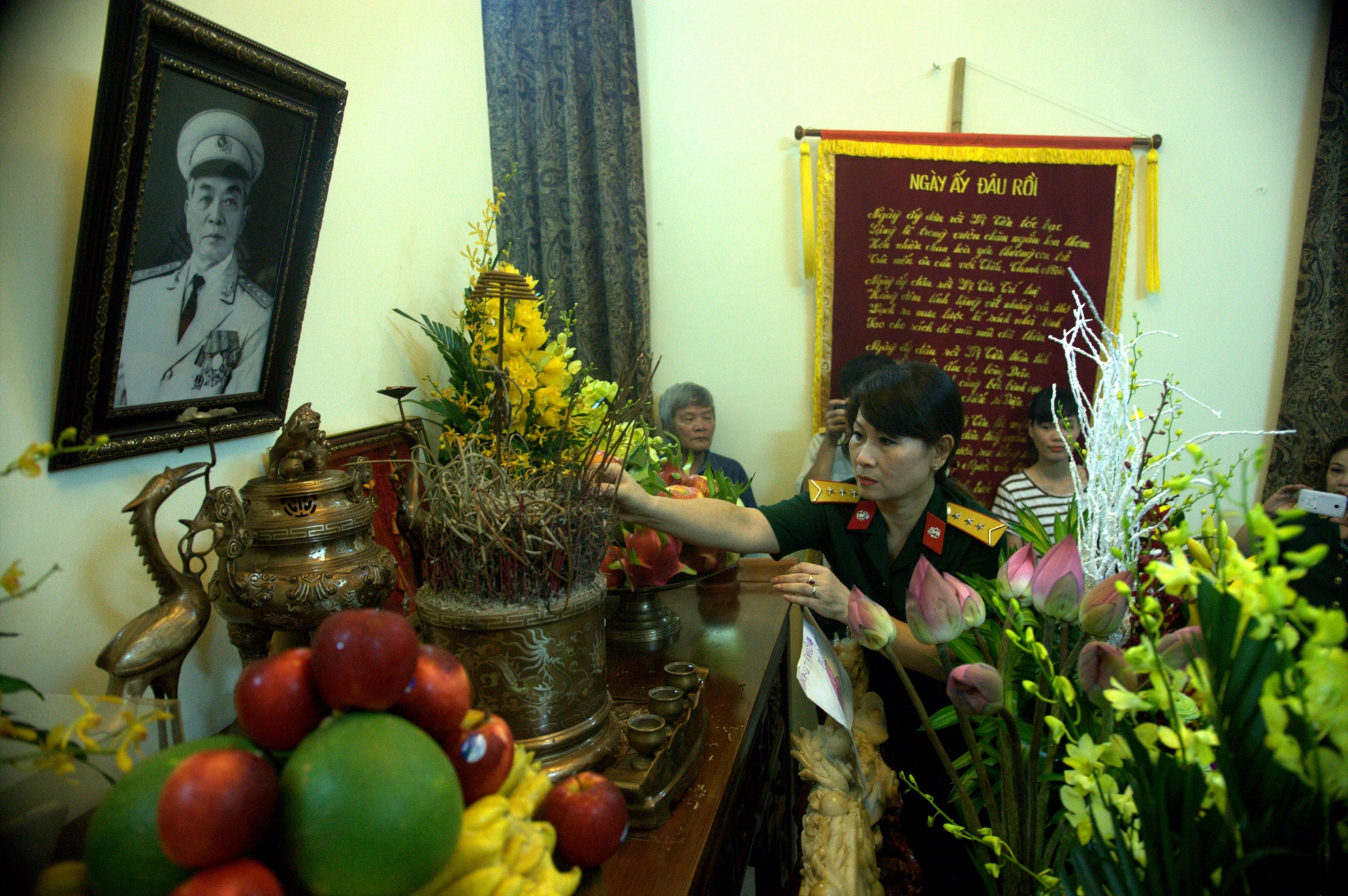 Tại gian thờ Đại tướng, ông Võ Điện Biên (con trai cả) xúc động khi được đón tiếp các đoàn khách tới thắp hương.