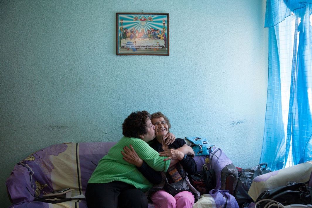 | Victoria (bên phải), một thành viên trong gia đình Casa Xochiquetzal, thăm con gái tại Pachuca, Mexico năm 2013. |
