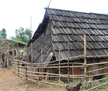 Ngôi nhà đều bằng gỗ pơ mu, chiếc cột cạnh lò nấu cám lợn đen nhánh và nhẵn như sừng, bởi hàng ngày cụ và các con cháu vịn vào đó để đảo cám. Mái nhà cũng vậy, lớp ngói phía dưới cụ chẻ từ cây pơ mu cỡ hai người ôm, mỗi năm lợp vài chục tấm, rồi khi các con cháu lớn lên chúng tiếp tục chẻ gỗ làm ngói lợp nhà. Ngôi nhà dài hun hút lúc nào cũng khói nghi ngút.