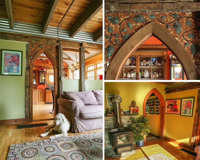 | Cửa ra vào thiết kế mái vòm mang hơi hướng phong cách Gothic. Những họa tiết khảm tường đều được làm thủ công từ những nguyên liệu tái chế. |