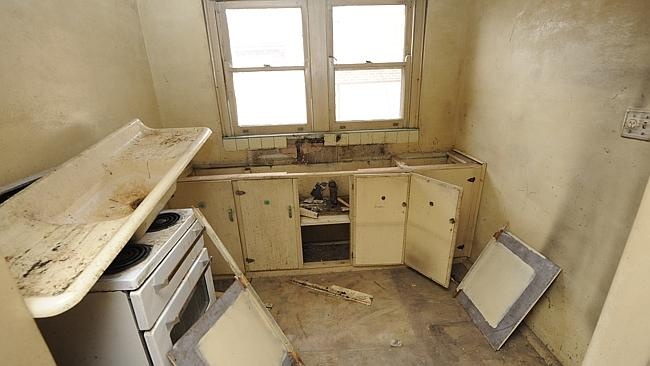 | Khu bếp của căn nhà chẳng có thứ gì mà người ta có thể sử dụng. |