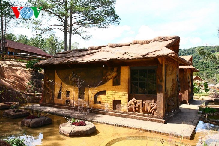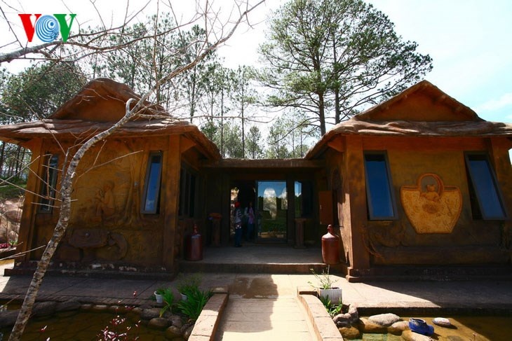 Ngôi nhà đất đỏ bazan là tác phẩm của nghệ nhân Trịnh Bá Dũng, chủ nhân của khu du lịch. Điểm độc đáo của công trình là chất liệu chủ đạo để xây dựng được làm bằng đất đỏ bazan, một loại chất liệu tiêu biểu của vùng Tây Nguyên.