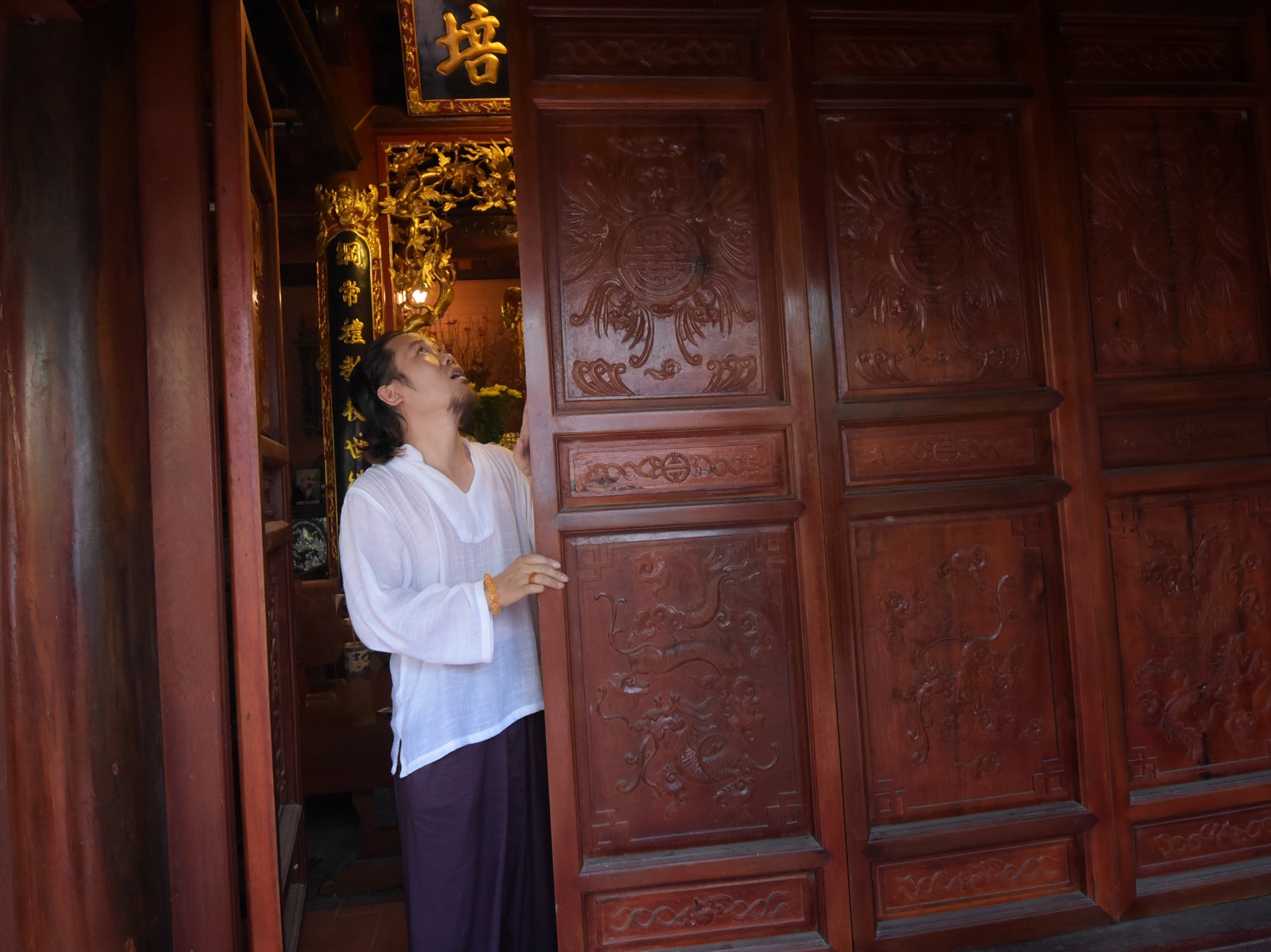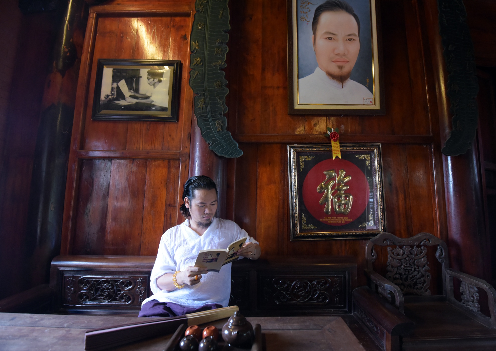 | Trong ngày mồng 1 Âm lịch hoặc ngày rằm, Vượng Râu từ chối nhận show để trở về với ngôi nhà lo việc thờ cúng Tổ tiên. |