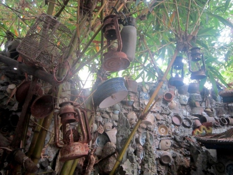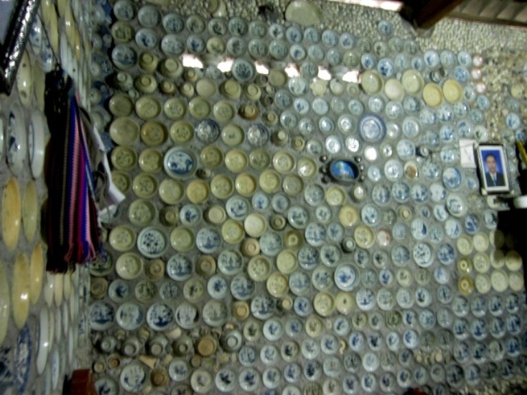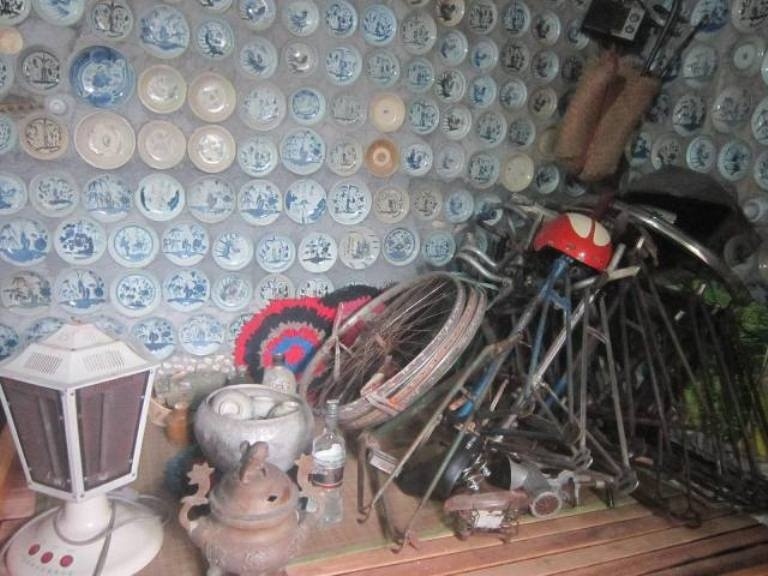 Toàn bộ “kiệt tác” của ông dùng tới gần 9000 chiếc đĩa, 90kg xèng, 20kg tiền xu, hơn 20kg các loại khuy áo cổ và vô vàn những mảnh gốm vỡ.