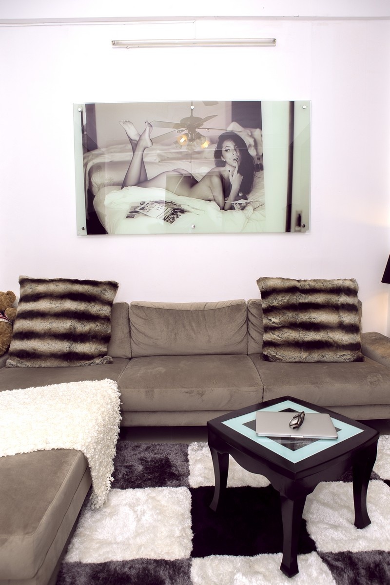 Bức ảnh nude của người mẫu tạo điểm nhấn cho căn phòng.
