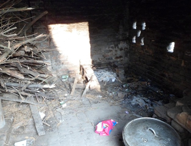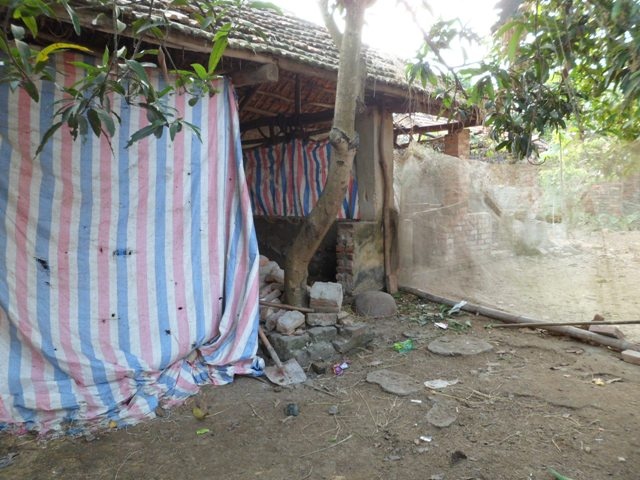| Bếp xây tạm bợ, thiếu cánh cửa. |