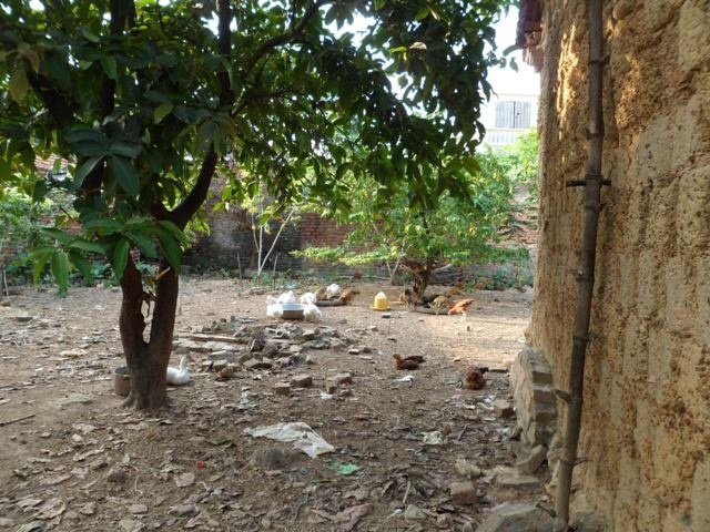 | Vườn cằn cỗi, ngổn ngang gạch đá. |