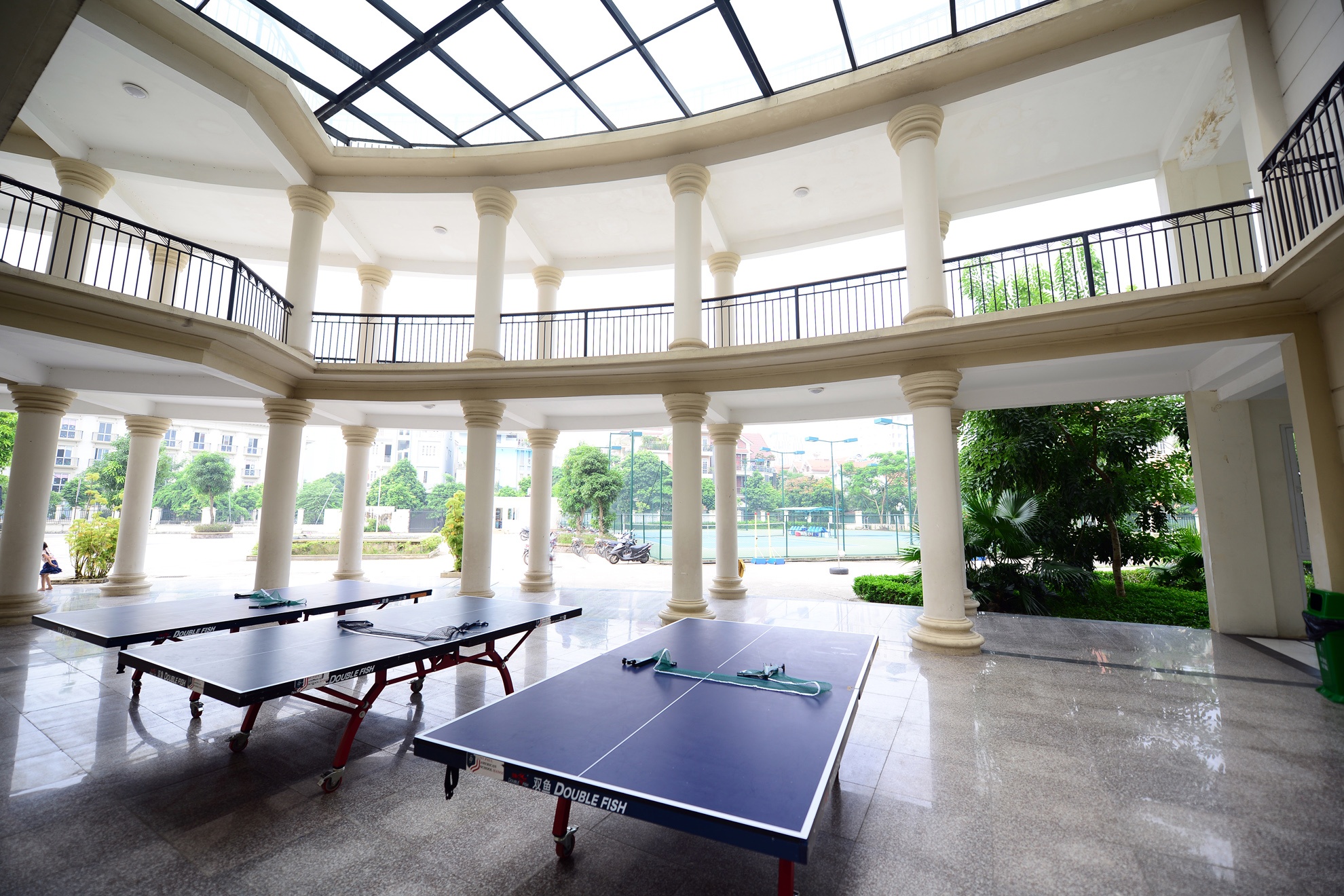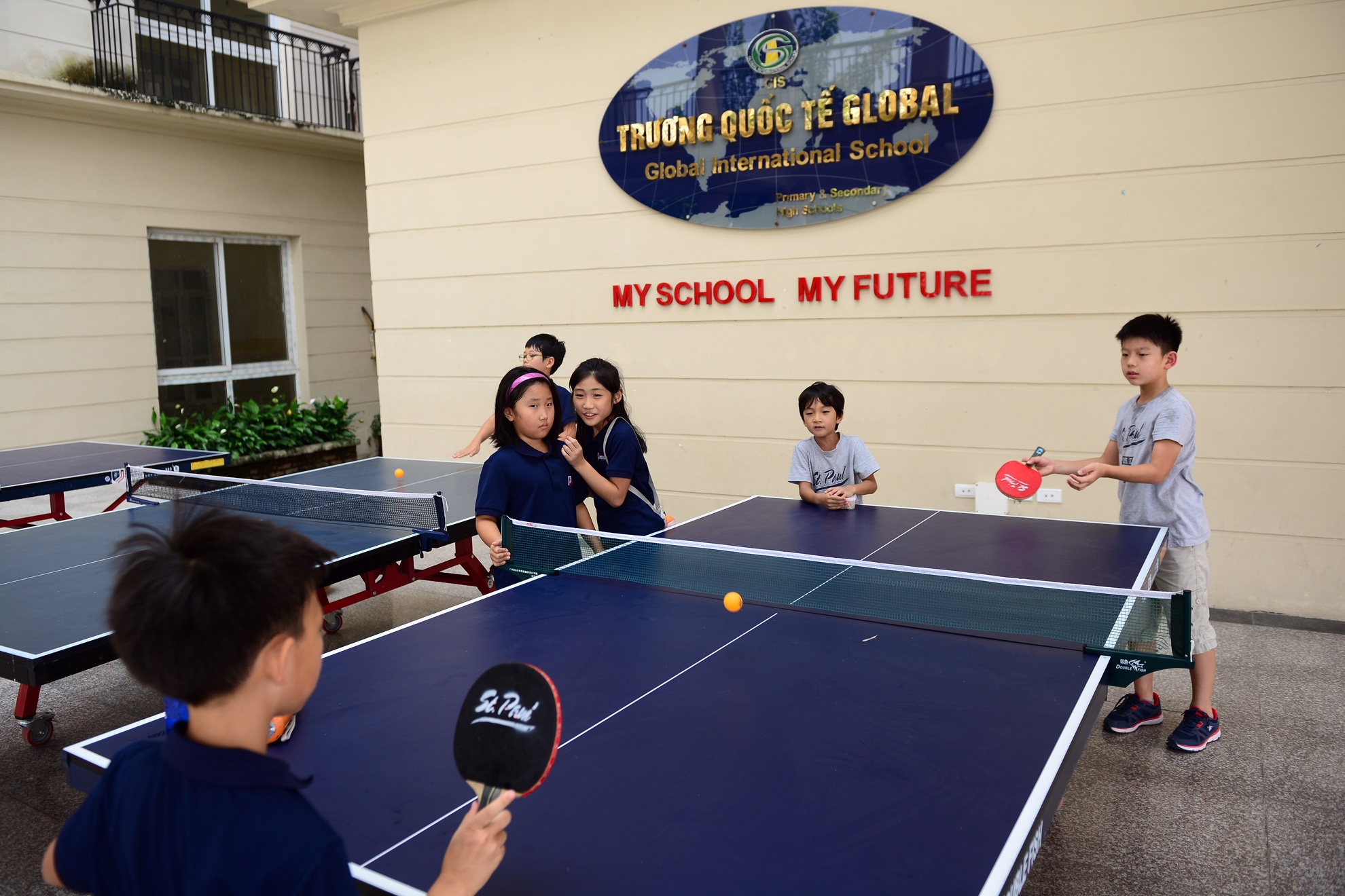 Các bàn bóng được đặt ngay trước lớp học là khu vui chơi chung cho học sinh.