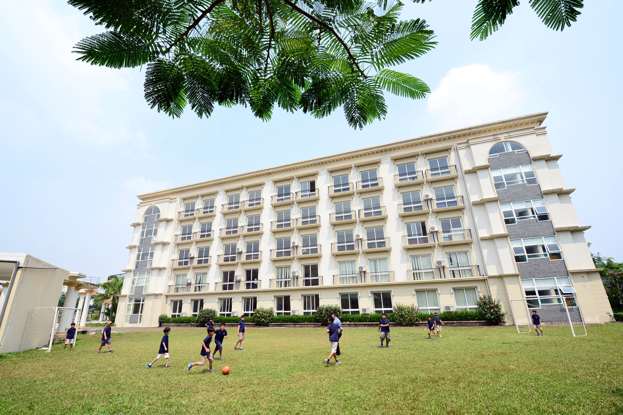 Trường có hai khuôn viên dành cho khối phổ thông và mầm non, tổng diện tích 40.000 m2. Hình ảnh khu nhà dành cho học sinh phổ thông.