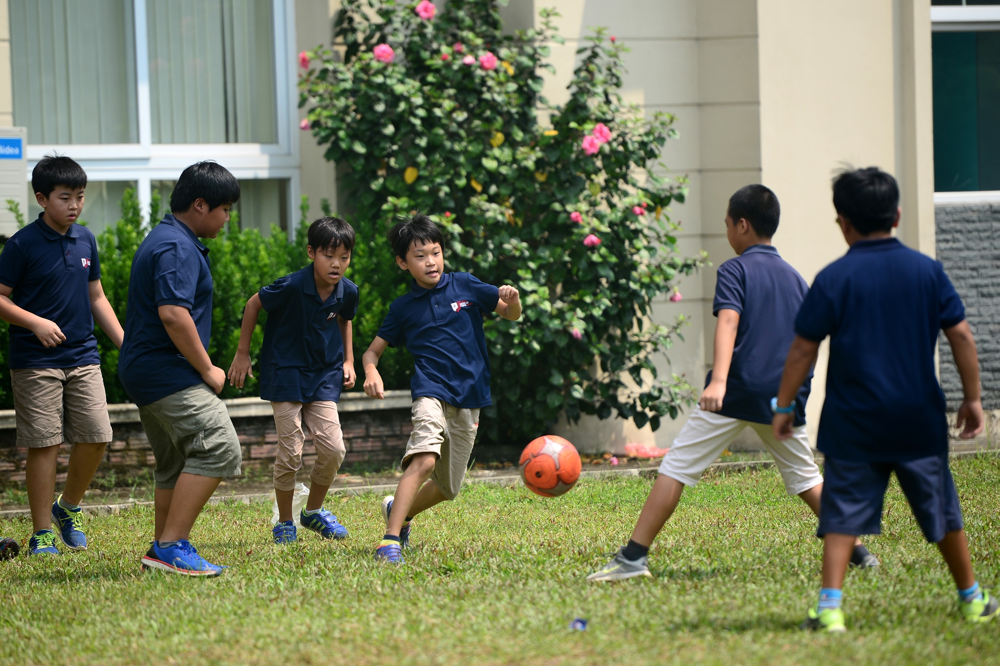 Góc phải trong khuôn viên của trường là khu sân bóng đá.