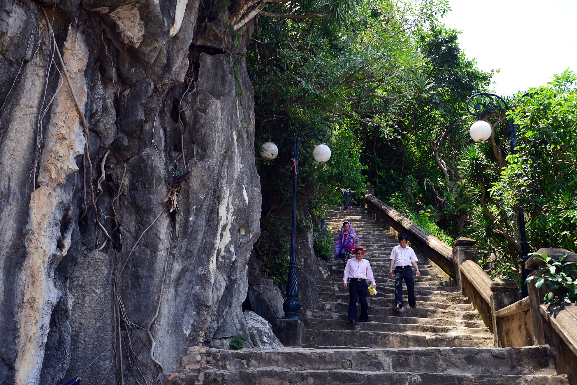 | Có hai con đường lên động và chùa ở Thủy Sơn: Cổng phía tây của núi gồm có 156 bậc tam cấp dẫn đến chùa Tam Thai, cổng phía đông gồm có 108 bậc dẫn lên chùa Linh Ứng. Đa số du khách đều lên núi theo cổng phía tây và đi xuống bằng cổng phía đông. |