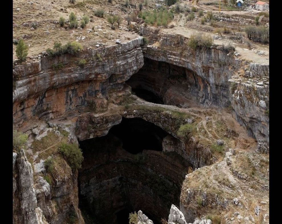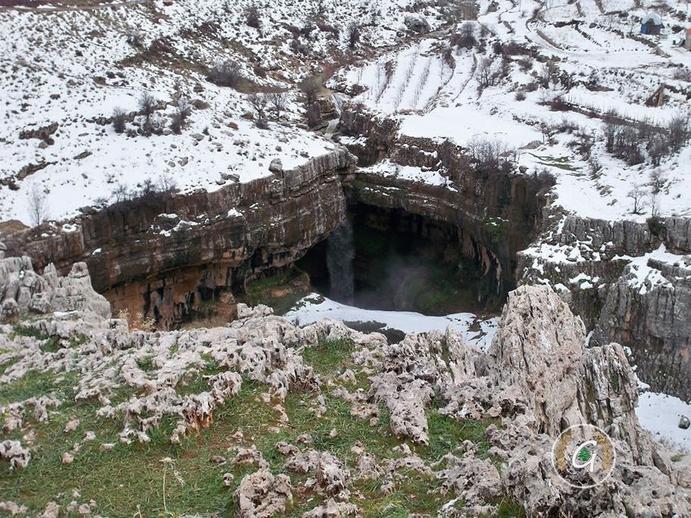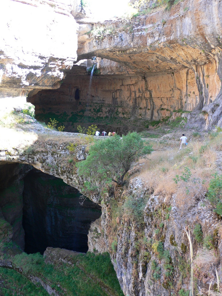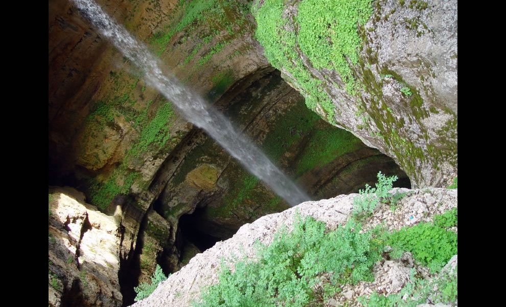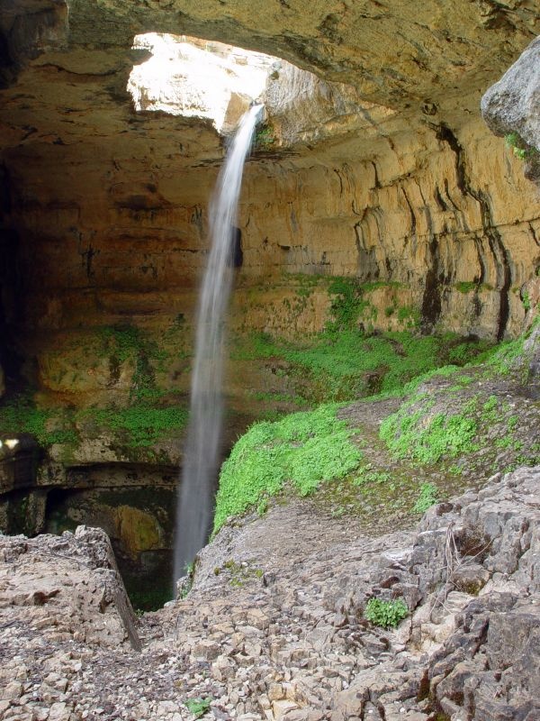 | Thác nước chảy ở độ cao 255m đổ vào miệng hang đá vôi lớn có 3 tầng được hình thành từ kỷ Jura trên núi Lebanon, trông vào miệng hang tựa như cống nước khổng lồ. |