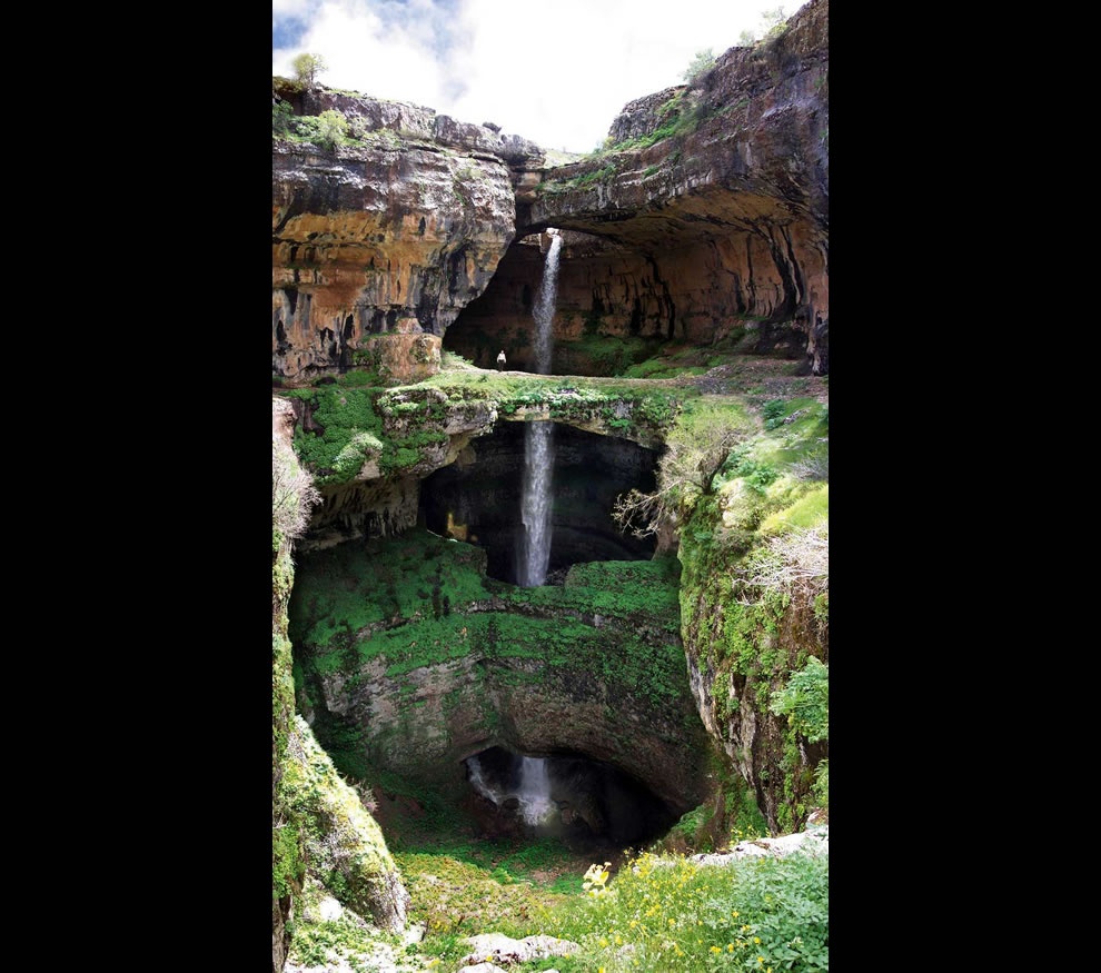 Thác nước Baatara tuyệt đẹp ở Lebanon đổ từ độ cao 255m xuống hang khổng lồ, gầm réo tựa như tiếng sấm trong suốt mùa xuân khi tuyết tan chảy.