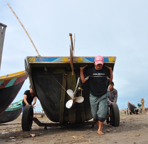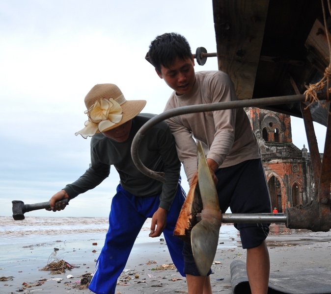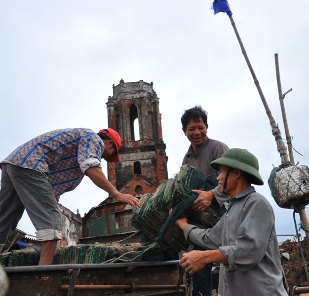 Sau bão số 14 (Haiyan), ngư dân xã Hải Lý (Hải Hậu, Nam Định) lại chuẩn bị ngư cụ hối hả vượt khơi đánh bắt cá.