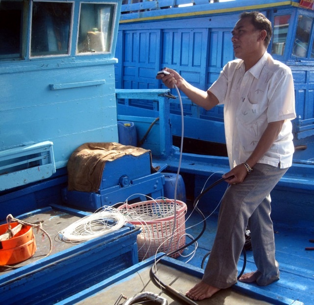 "Thiết bị gây tê cá ngừ rất hiệu quả. Sau khi gây tê cá khoảng vài phút, tui kéo cá lên tàu. Còn trước đây gặp cá lớn thì mất cả tiếng đồng hồ vật lộn mới đưa được cá lên boong, có khi còn bị sẩy nữa", ngư dân Lê Tấn Hồng cho biết.