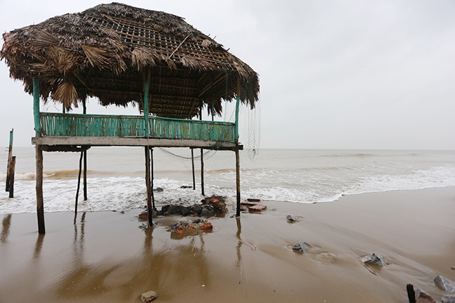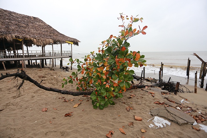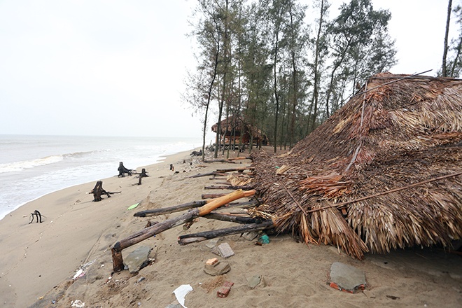 | Những căn chòi làm du lịch bị thiệt hại từ cơn bão trước chưa kịp dựng lại thì nay bão mới đã ập đến. |