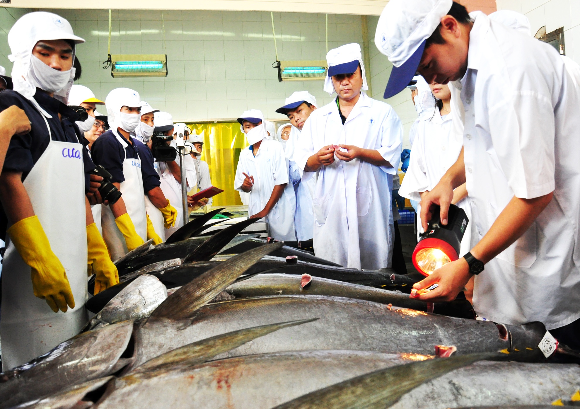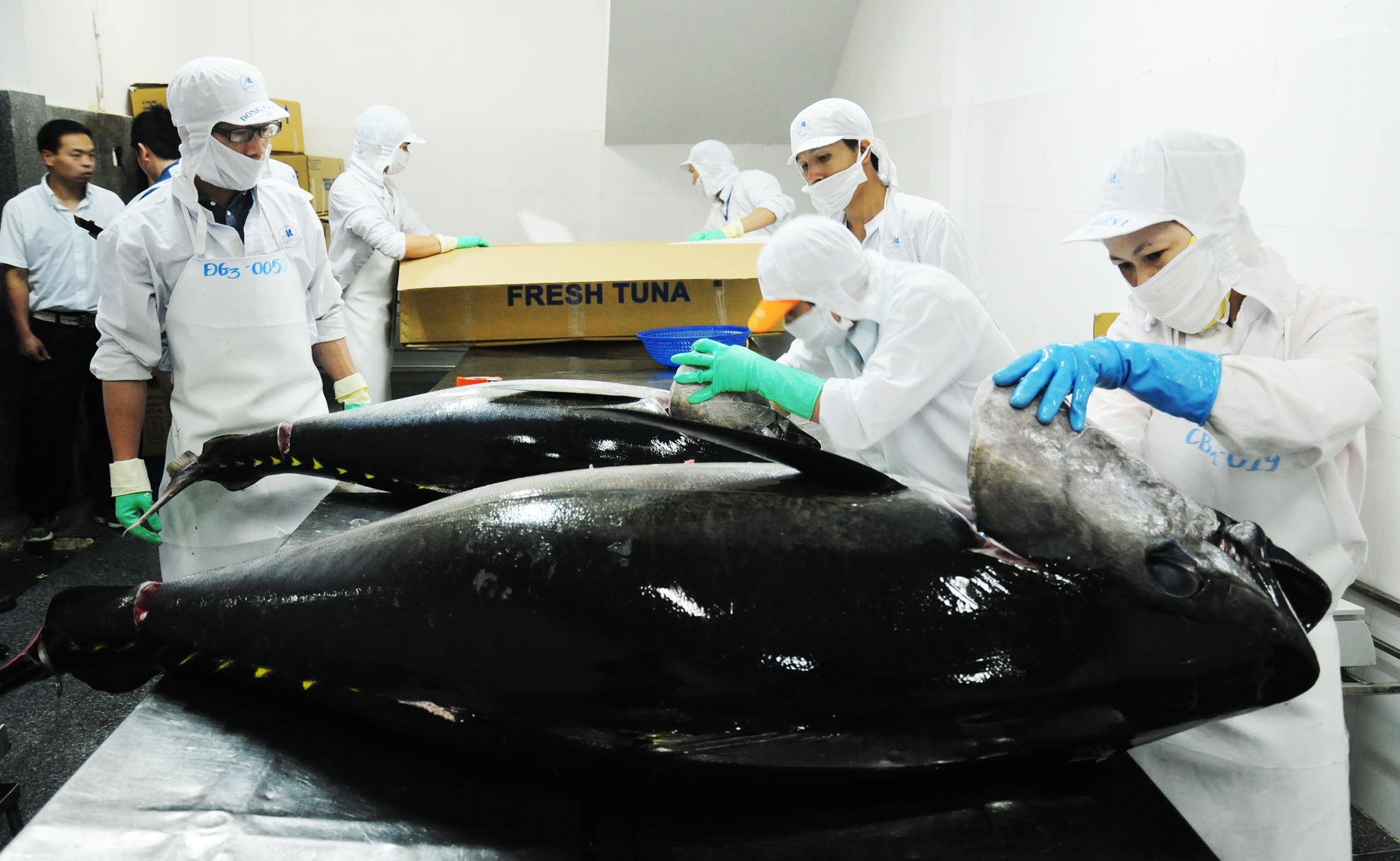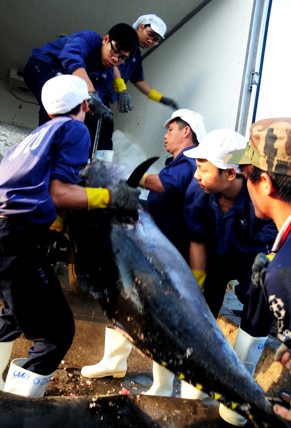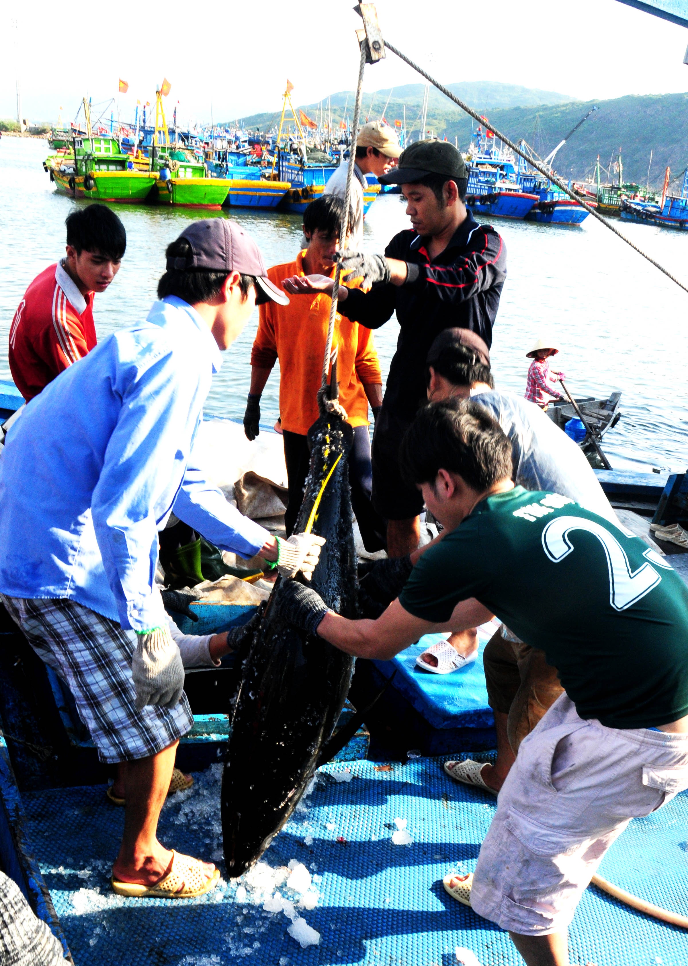 | Ngư dân đánh bắt cá ngừ đại dương đạt chuẩn xuất khẩu, Công ty CP thủy sản Bình Định thu mua với giá 170.000 đồng mỗi ký. Các ngư dân tham gia dự án đánh bắt loại cá này theo công nghệ Nhật Bản được tỉnh hỗ trợ giá 50.000 đồng mỗi ký, doanh nghiệp thu mua cao hơn giá thị trường 20%. |