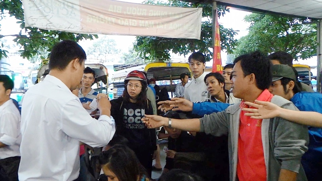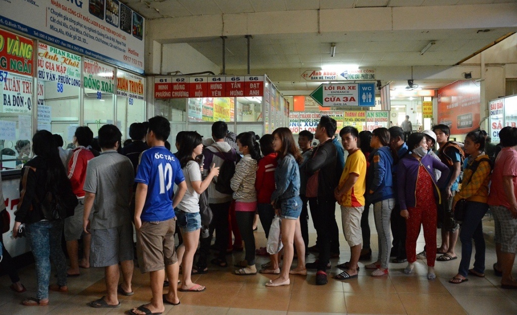 | Các tuyến xe Tết chủ yếu được bán vào hôm nay là Phú Yên, Đà Nẵng, Quảng Ngãi, Huế, Nghệ An... và số lượng vé sẽ giới hạn. Mỗi tuyến đi, nhà xe chỉ phát 50 số thứ tự cho những người đến sớm. Nhiều khách phải ra về tay không vì tới giờ đi làm buổi sáng. |